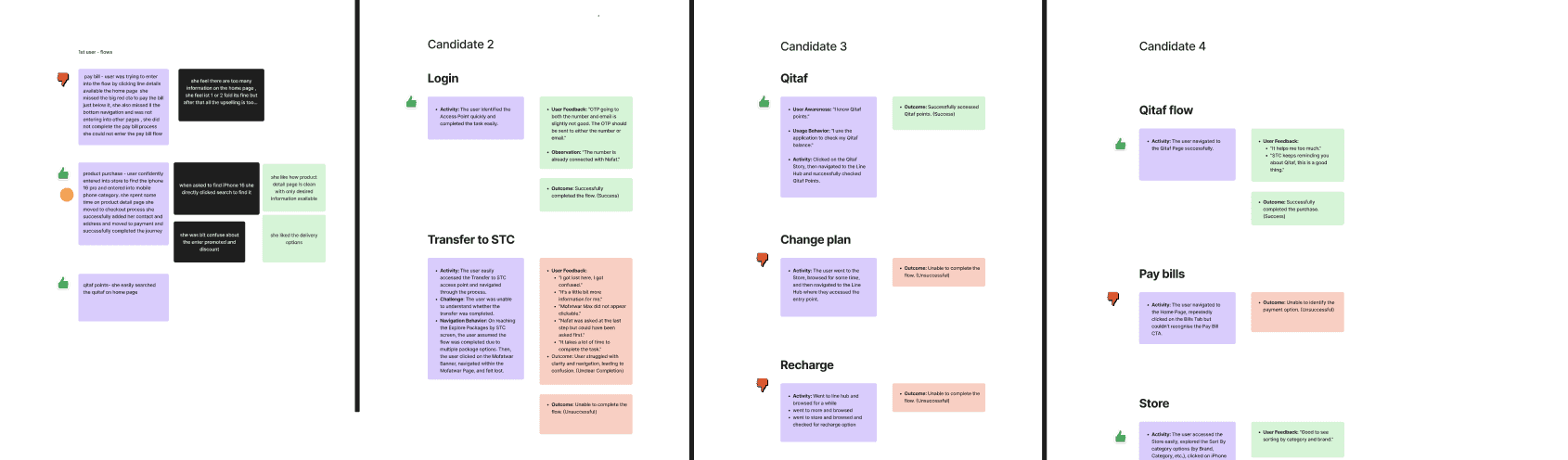 • Core journeys (Pay Bill, Recharge, Change Package, Product Purchase) had multiple entry points, inconsistent logic, and long, fragmented flows