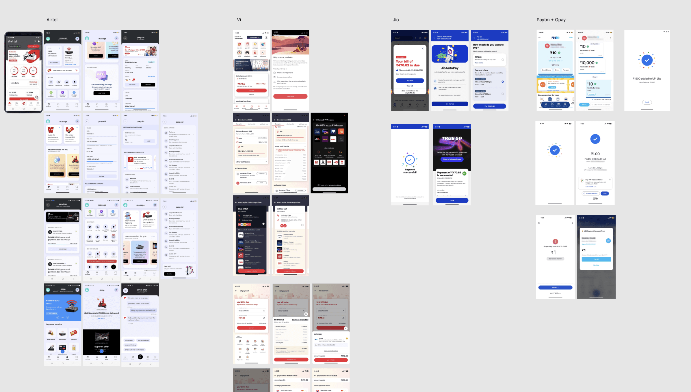 A comparative analysis was conducted across regional and global telecom apps, lifestyle app, fintech platforms, super apps, and high-usage consumer apps to understand how complex services are simplified at scale. The focus was on navigation patterns, service discoverability, transaction flows, personalisation, and visual hierarchy. This helped identify industry benchmarks, avoid known UX pitfalls, and extract reusable interaction patterns relevant to mySTC’s ecosystem.