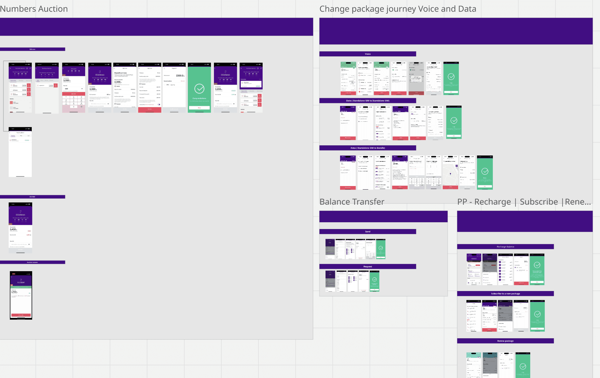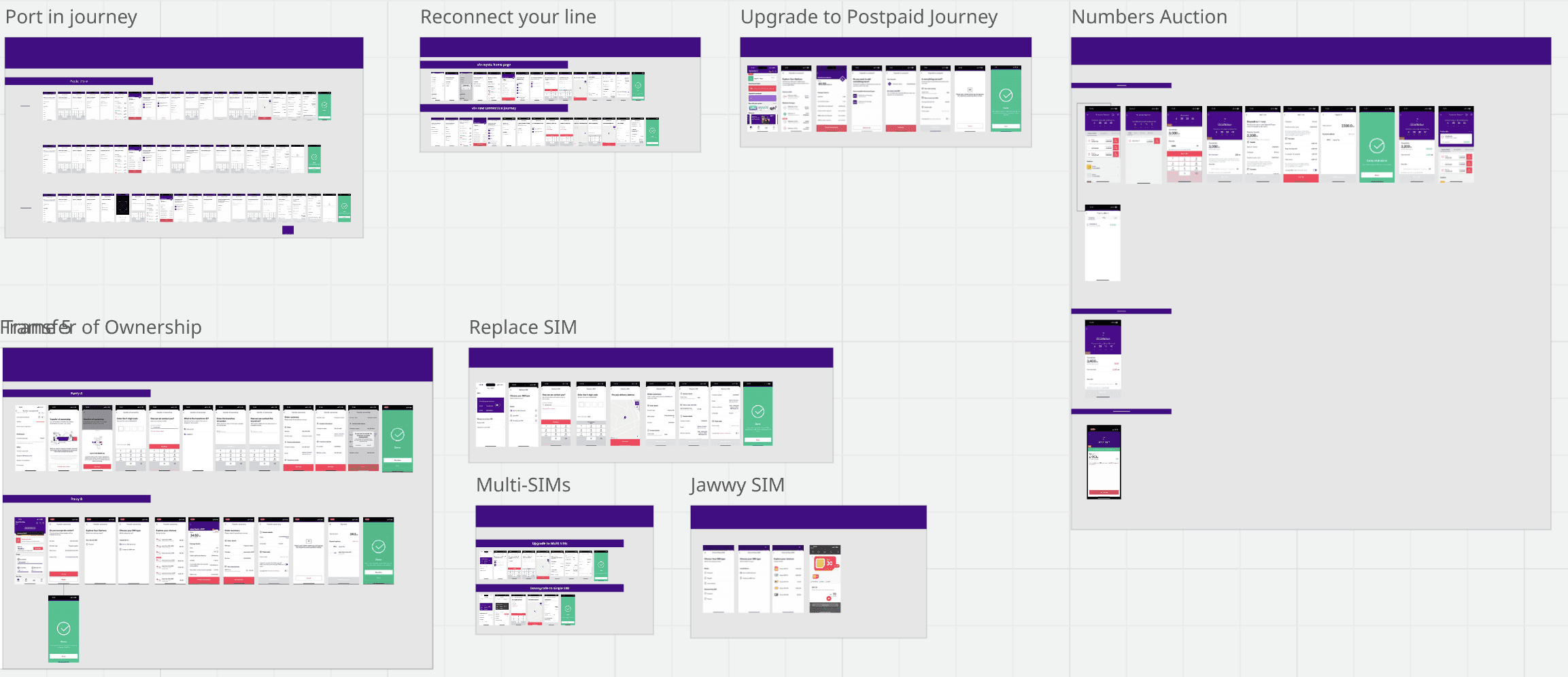 A comprehensive breakdown of existing mySTC journeys revealed fragmented flows, duplicated steps, and inconsistent patterns across critical telecom use cases. This exercise was essential in establishing a strong baseline understanding of the app’s flows.